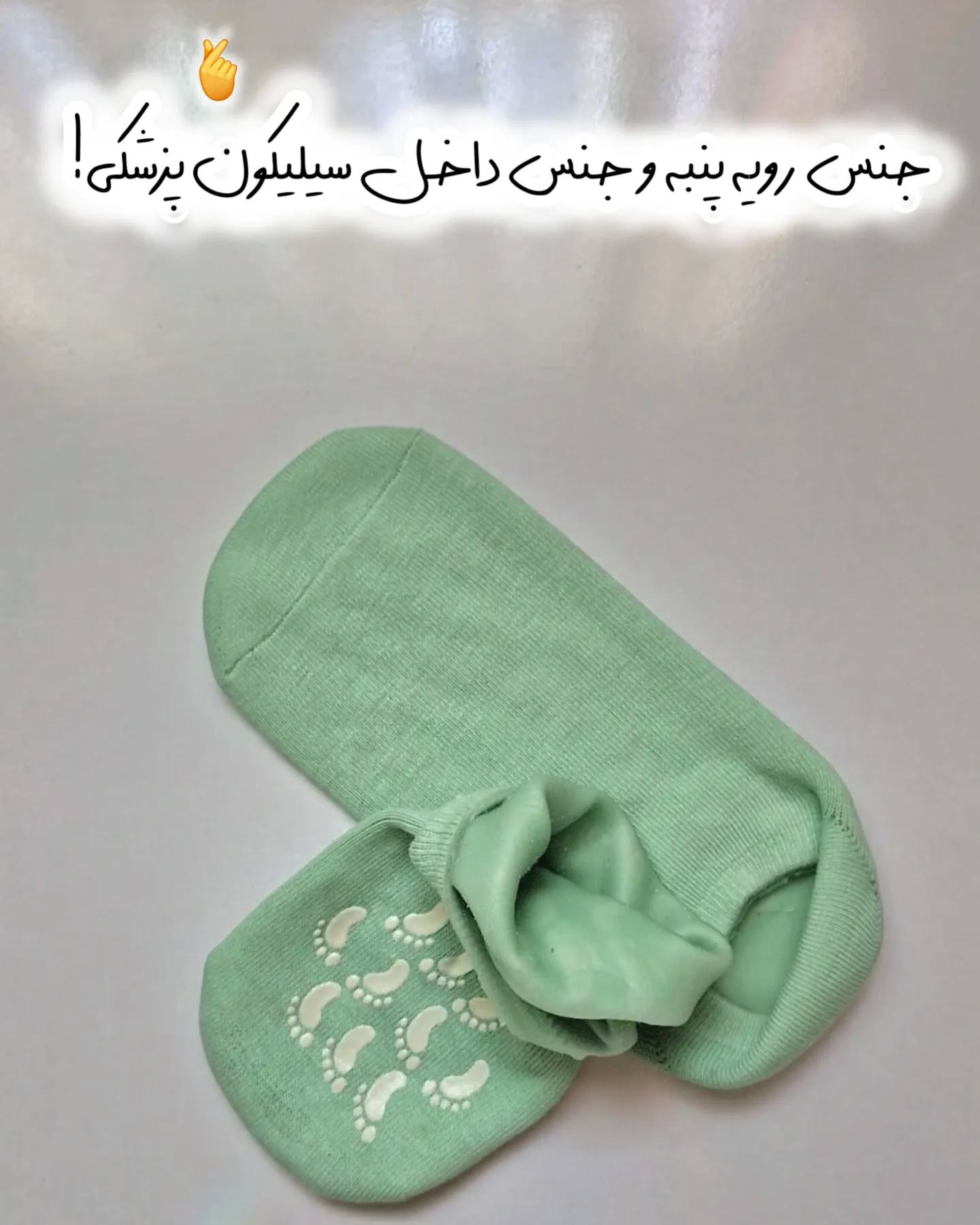 •جنس رویه جوراب پنبه س و جنس داخلش سیلیکونیه، کف جوراب هم ترمز داره ک لیز نخورید!😁