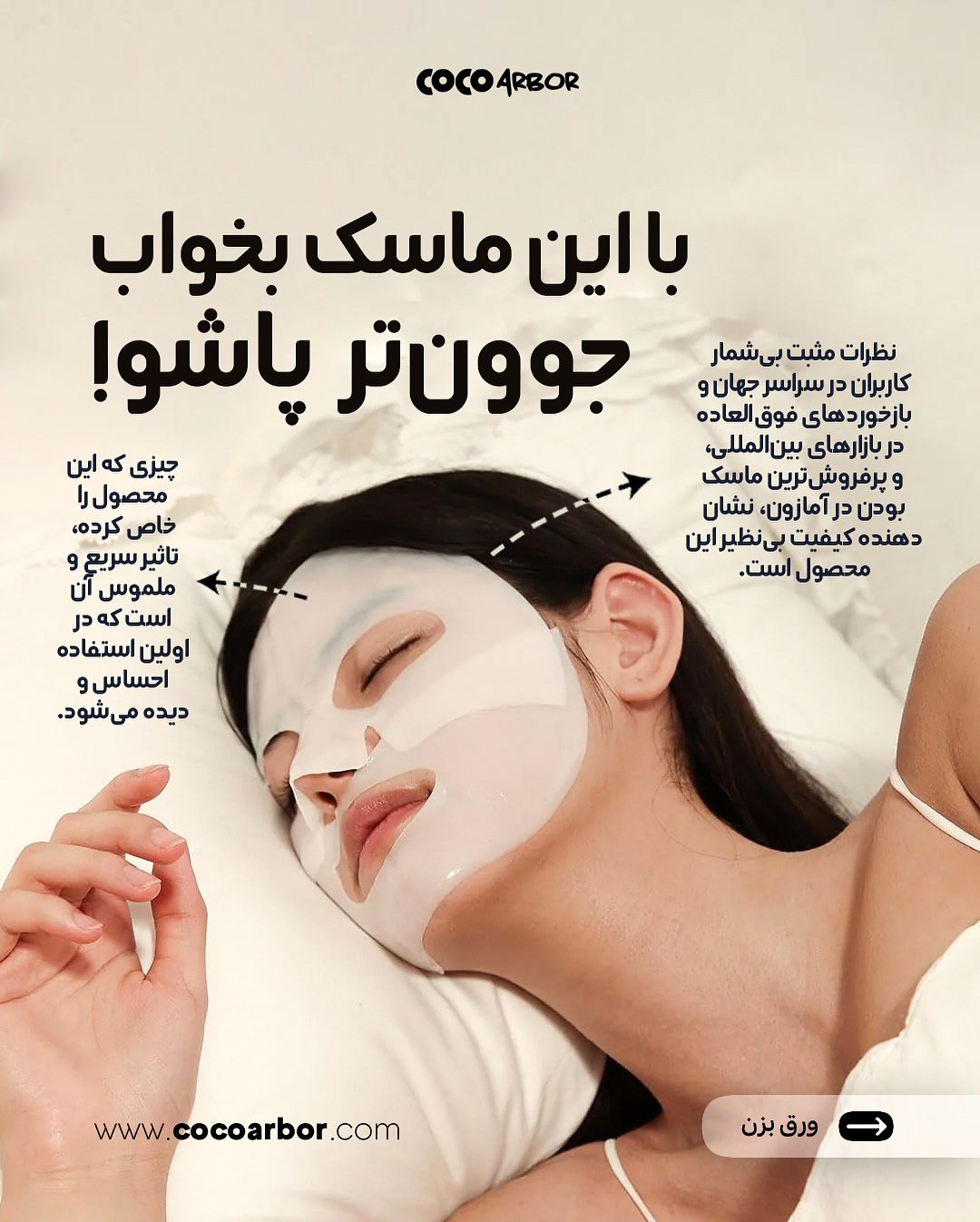 ماسک رو اخر شب ،بعد از مراحل روتین مراقبت پوستت بذار و تاصبح روی پوستت نگه دار. وقتی بیدار شدی٫ به ارومی ماسک بردار