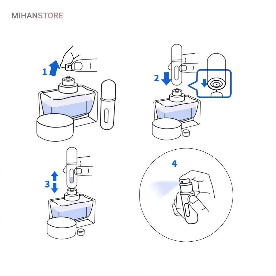 روش استفاده : درب کوچک والف شیشه ادکلن را بردارید.انتهای اتومایزر را روی والف ادکلنی قرار دهید.اتومایزر را مکرر بالا و پایین نمایید.این کار را تا زمان پر شدن محفظه ادامه دهید.قابلیت پر کردن آسان و استفاده مجدد دارد🩷